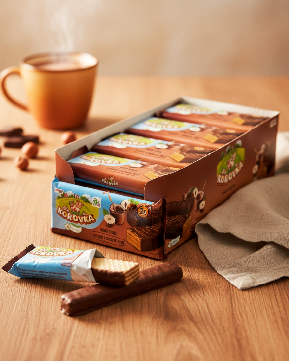 Вафельные стики "КОРОВКА" в глазури (шоколад и фундук), 42г